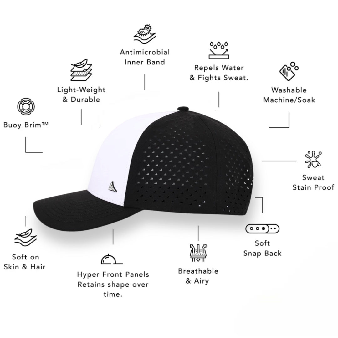 Engineered for life on the move, this hat was built to handle sun, sweat, salt, and spray—without losing comfort or shape. With our signature Buoy-Brim™ tech, it floats. With laser venting and ultra-light fabric, it breathes. And with water-resistant durability, it goes wherever you do.