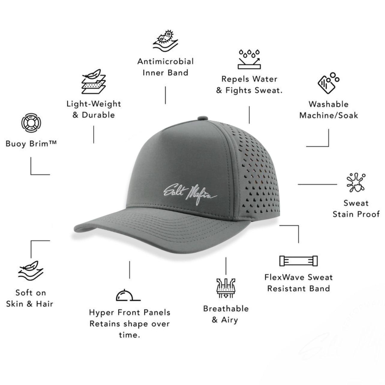 The Flexwave is Salt Mafia’s most requested hat—no snaps, just a clean, stretchy fit in two sizes. It’s ultra-light, waterproof, and built to move with you. Whether you’re chasing fish, sun, or your next win, the Flexwave floats with our Buoy-Brim™ tech, resists sweat and salt, and holds its shape no matter what you throw at it.