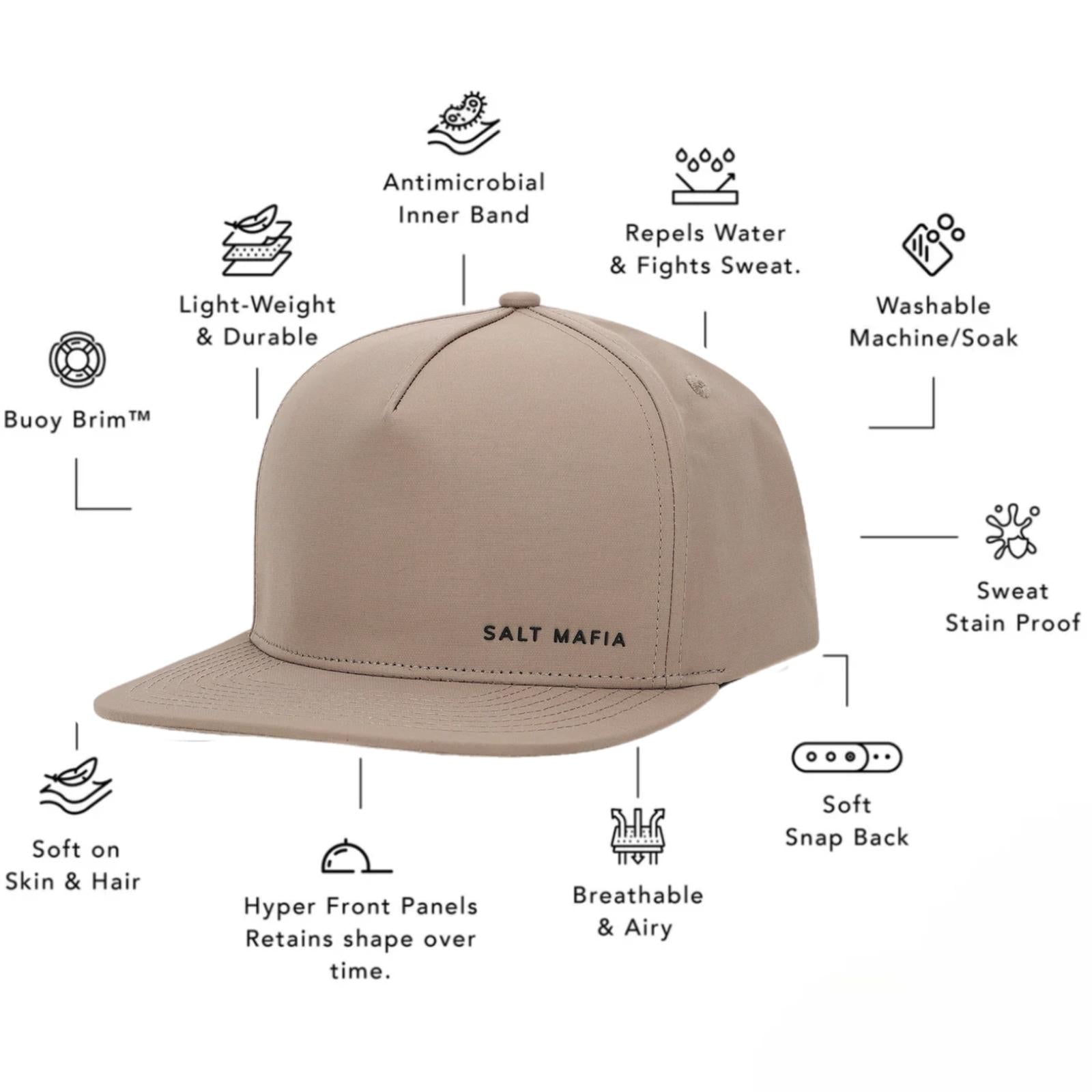 Experience next-level comfort with Salt Mafia’s Performance Lite snapback—now with a softer inner headband and an upgraded polyester-cotton fabric blend for an even better fit and feel. Built for the elements, this hat is engineered to handle both ocean adventures and land pursuits with ease. Featuring Buoy-Brim™ technology, it floats on water while resisting sweat and moisture, making it the perfect fusion of performance and style for wherever life takes you.