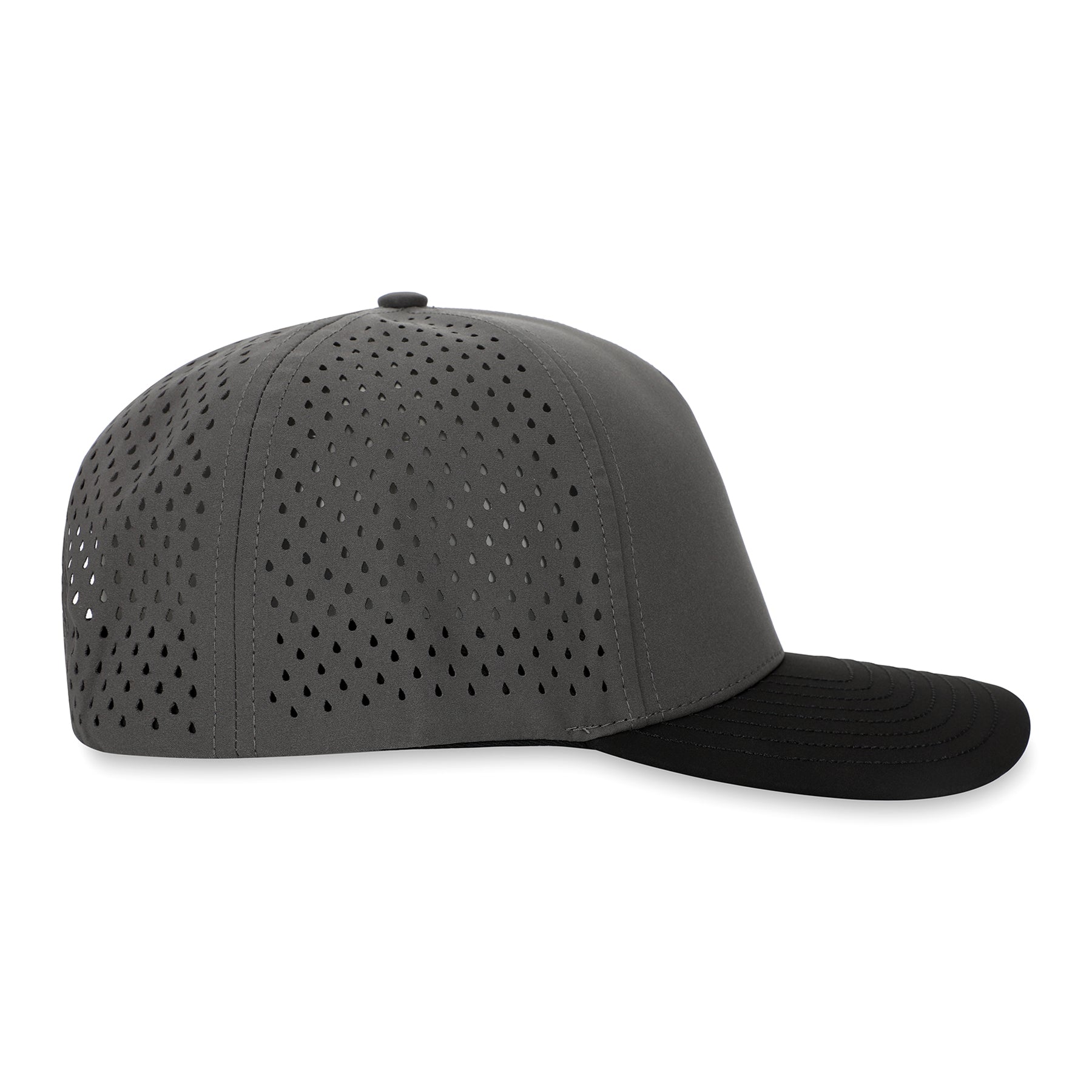 Style: 5-Panel Curved Brim Hat / Grey Panels / Black Brim