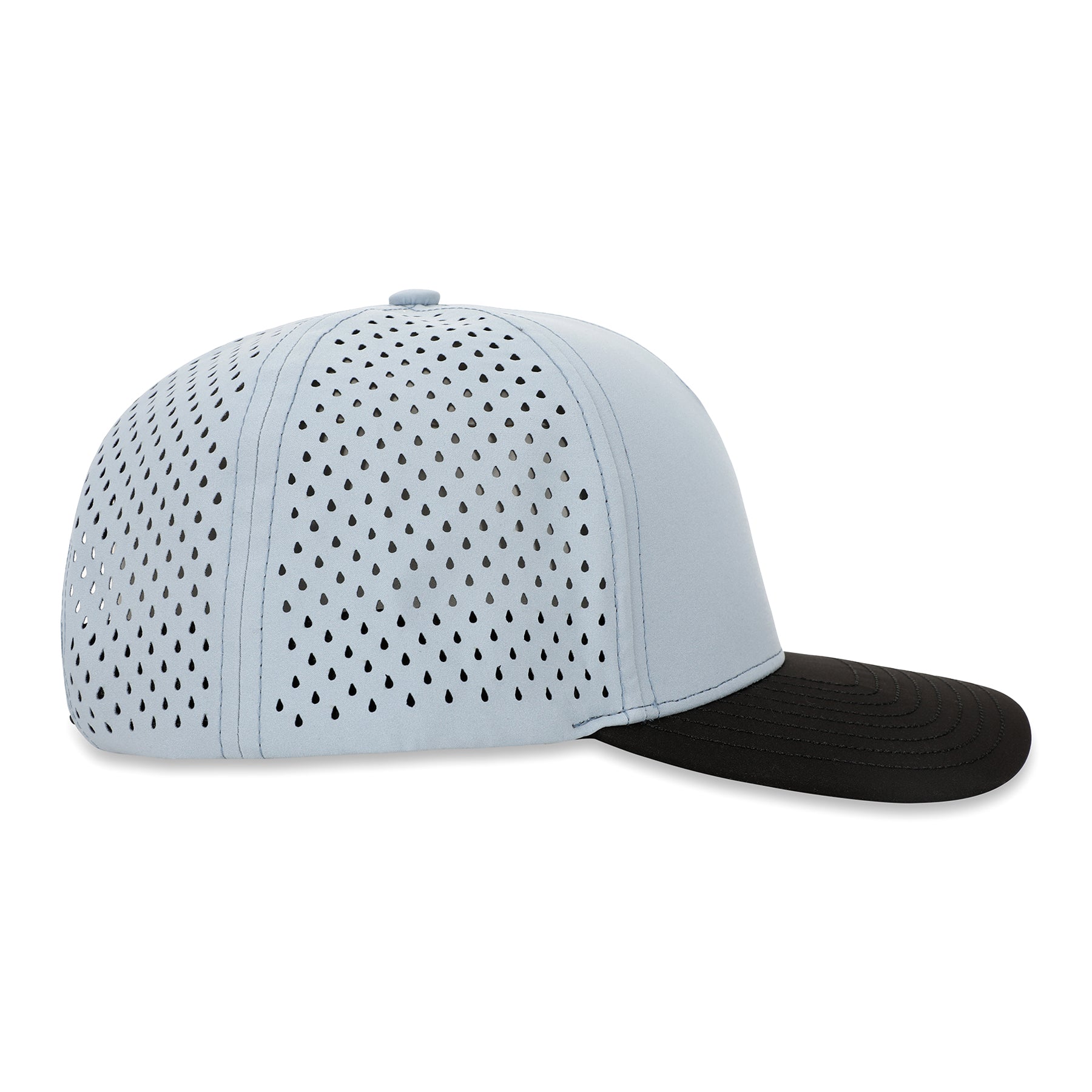 Style: 5-Panel Curved Brim Hat / Sky Blue Panels / Black Brim