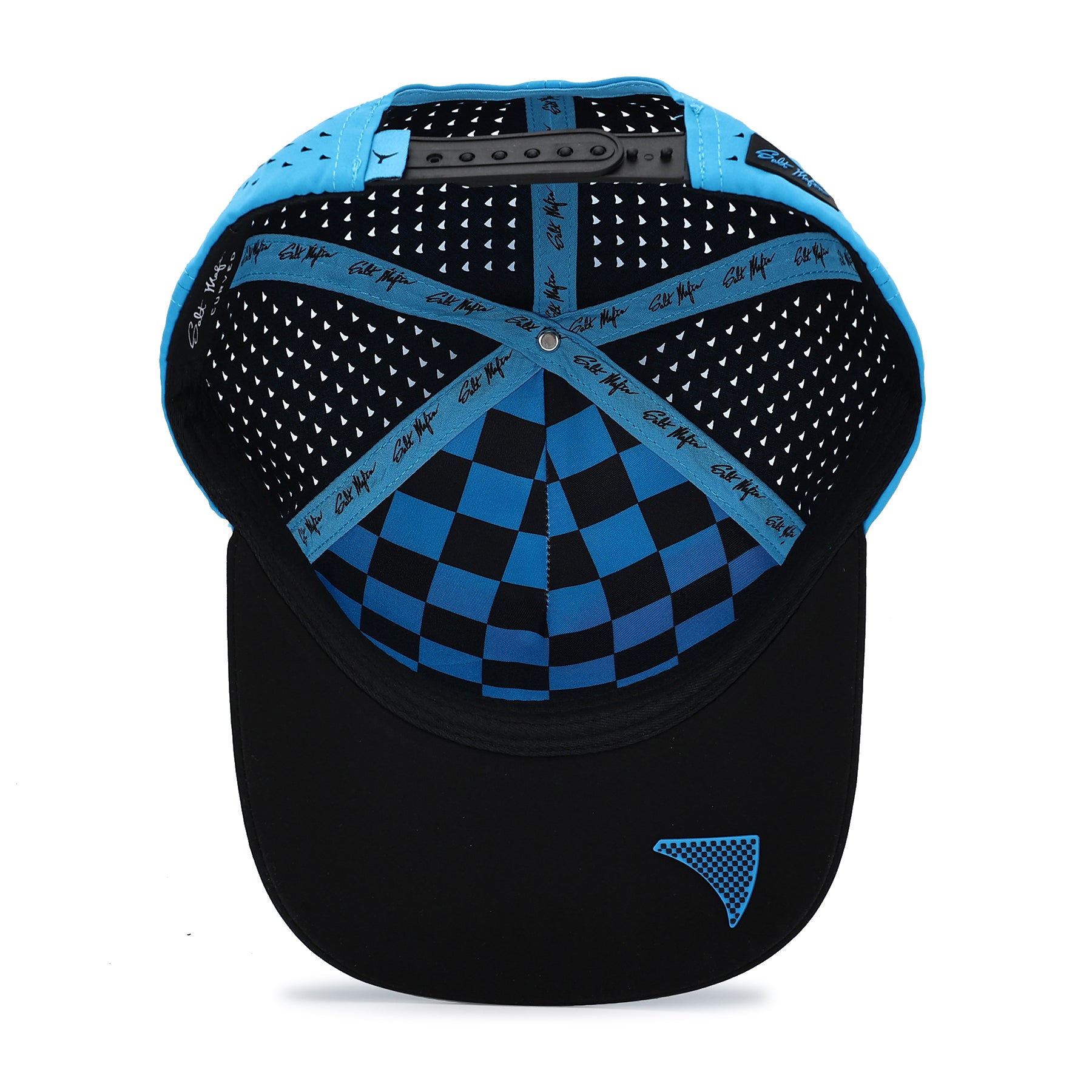 Color: Electric Blue Panels with Black Brim and Accents